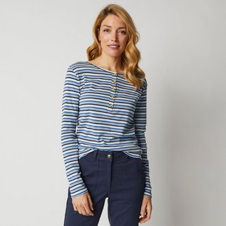 Pruhované žerzejové polo tričko s dlouhými rukávy