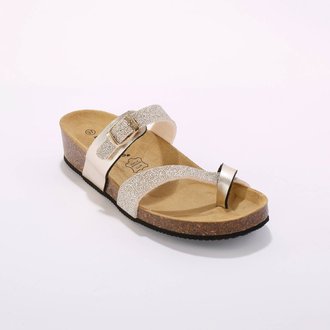 Pantofle na korkové klínové podrážce