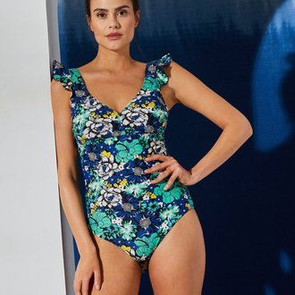 Plavková balkonetová podprsenka, potisk květin, s kosticemi