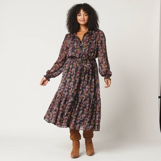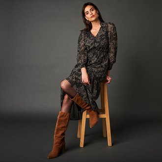 Dlouhé voálové šaty s potiskem a metalickými vlákny