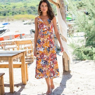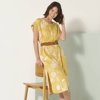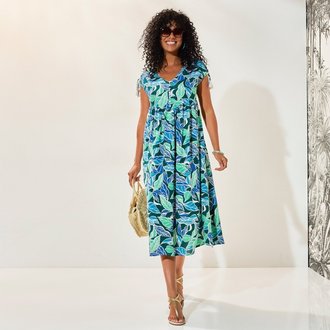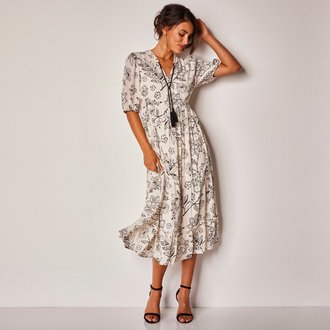 Midi šaty na knoflíčky s potiskem rostlin