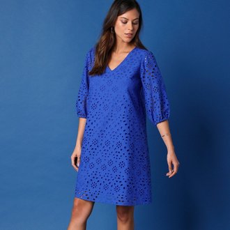 Krátké rovné šaty s ažurovou výšivkou