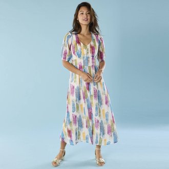 Kreponové midi šaty na knoflíky, s potiskem