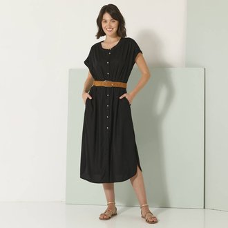 Jednobarevné midi šaty na knoflíčky