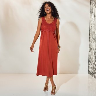 Dlouhé šaty s macramé náprsenkou