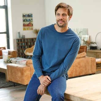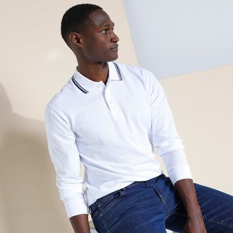 Polo tričko s pruhovaným límečkem a dlouhými rukávy