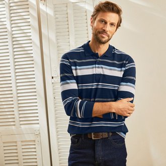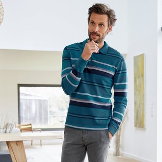 Pruhované polo tričko z piké úpletu, s dlouhými rukávy
