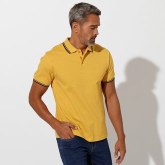 Polo tričko z piké úpletu, s krátkými rukávy a s proužky na rukávech a límečku