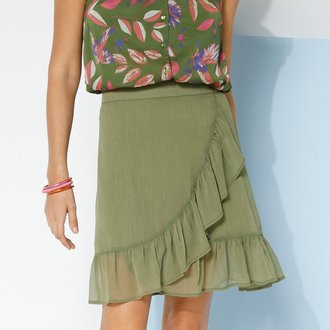 Sukně s volánem a zavinovacím efektem, jednobarevný voál