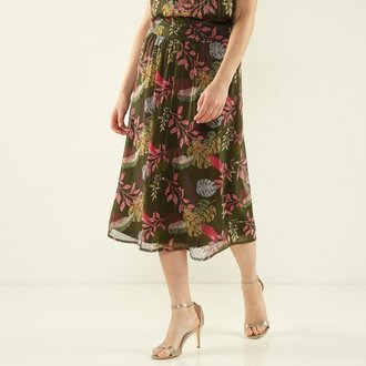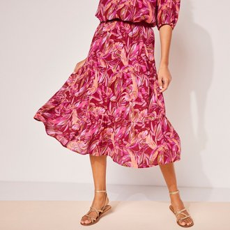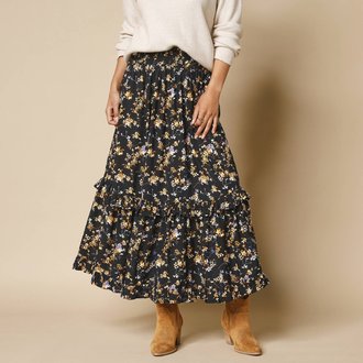 Rozšířená volánová sukně s potiskem květin