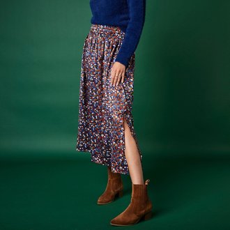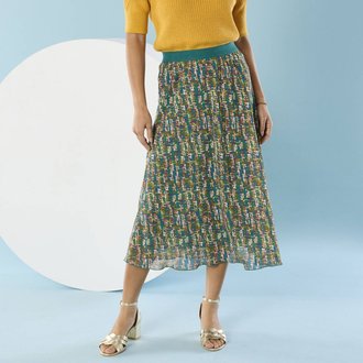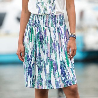 Sukně s potiskem a žabičkovaným pasem