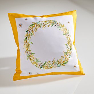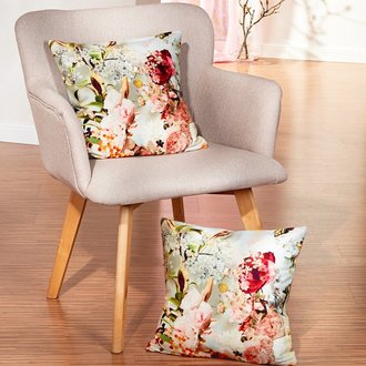 Čtvercový polštář s výšivkou květin, bavlna/len