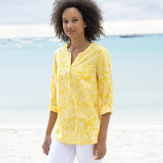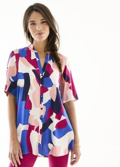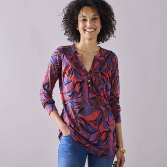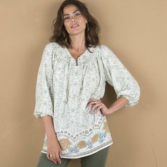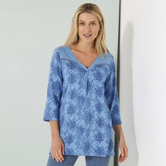 Tunika na knoflíčky s tuniským výstřihem a grafickým potiskem