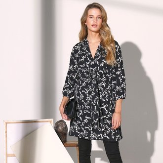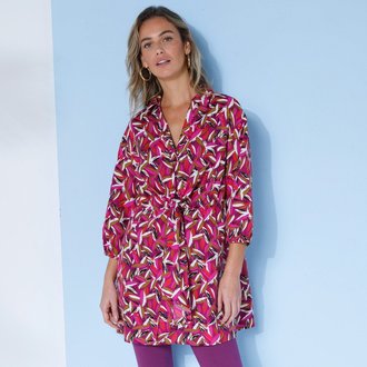 Tunika na knoflíčky s vázačkou a potiskem