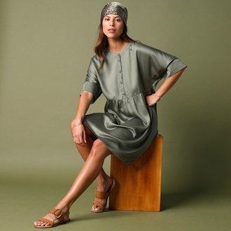 Jednobarevná plisovaná sukně z recyklovaného polyesteru, pro vysokou postavu