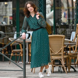 Třpytivá plisovaná midi sukně