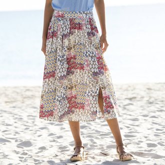 Midi sukně s pružným pasem a potiskem