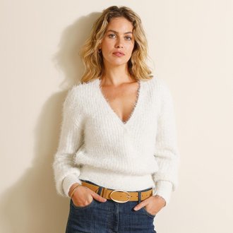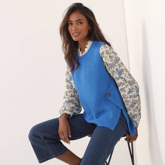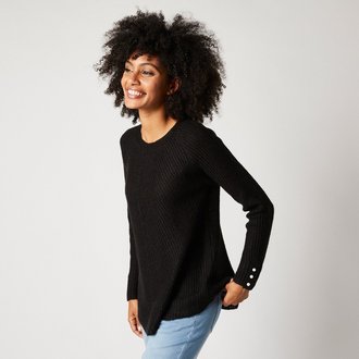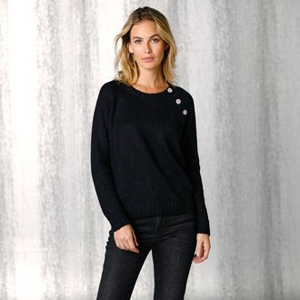 Pulovr s ozdobnými bižu knoflíky na rameni