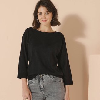Pulovr s lodičkovým výstřihem a 7/8 rukávy