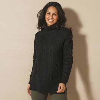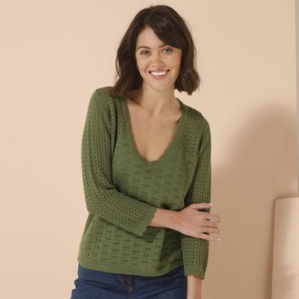 Ažurový pulovr s výstřihem do „V“ a copánkovým vzorem