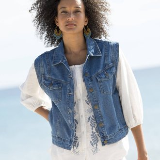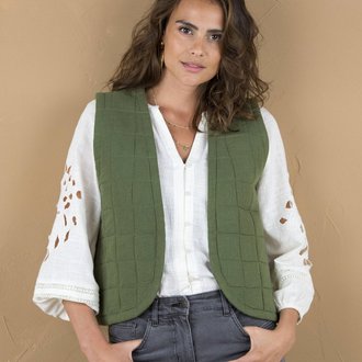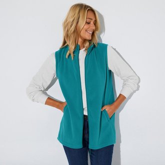Dlouhá vesta z hladkého úpletu s vázačkami na bocích
