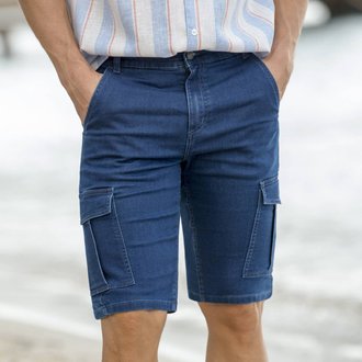 Cargo bermudy ze strečového denimu