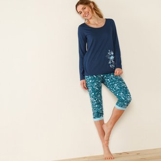 Pyžamo se 3/4 kalhotami s potiskem, bavlna/modal