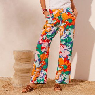 Široké kalhoty, bavlna-len