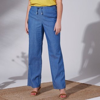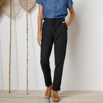 Rovné vzdušné kalhoty, z bavlny a lnu