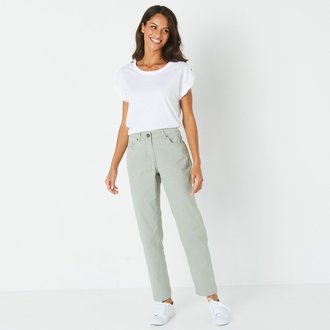 Rovné kalhoty s páskem, měříte-li mezi 155 až 160 cm, vnitřní délka nohavic 73 cm