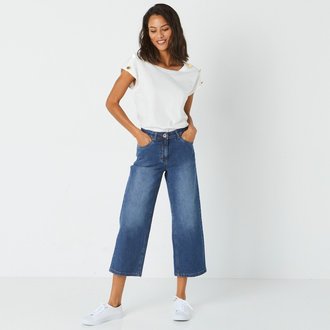 Keprové široké kalhoty pro menší postavu