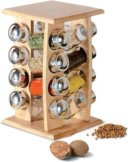 Kořenka sklo/chrom 16 ks+stojan dřevo