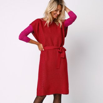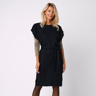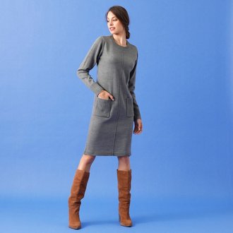 Pulovrové šaty s výstřihem lemovaným volánkem