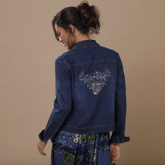 Džínová bunda s výšivkou na zádech