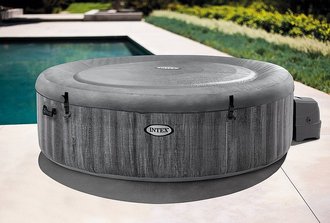 Deokork Set nábytku k mobilní vířivce kruhové (šedý umělý polyratan)