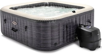 Deokork Set nábytku k mobilní vířivce hranaté (šedý umělý polyratan)