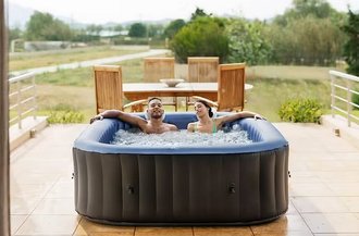 Deokork Set nábytku k mobilní vířivce hranaté (černý umělý polyratan)