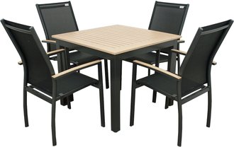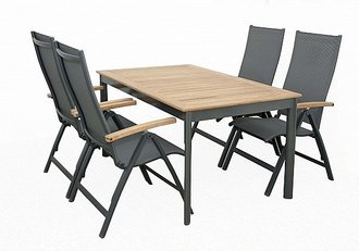 DEOKORK Hliníkové křeslo s textílií NOVARA (antracit/dekor dřeva)