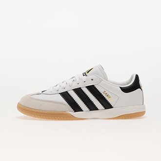 Adidas Originals Samba sneakers in white, black, and gum.