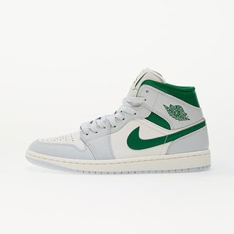 Men's Jordan Air 1 Mid sneakers in Summit White, Pine Green, Pure Platinum, and Sail