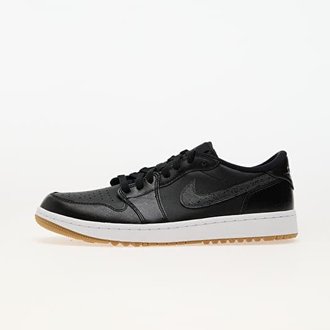 Men's Jordan Air 1 Low sneakers in white, black, and varsity red.