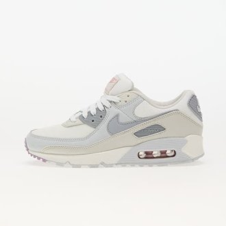 Women's Nike Air Max 90 shoes in Summit White, Wolf Grey, and Beyond Pink