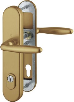 Door hardware, door handles, Hoppe security handles for entrance doors, London lever handle, 37-42 mm, bronze without cover