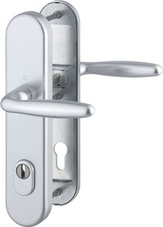 Door hardware, door handles, Hoppe security handles for entrance doors, Verona lever handle, full quick-four-sided quickfit 8 with steel cover