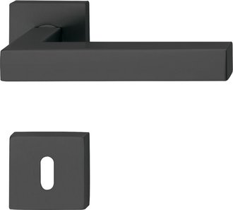 Door hardware, door handles, knobs, Solid Norway interior handles, stainless steel, black flat, OB square rosette