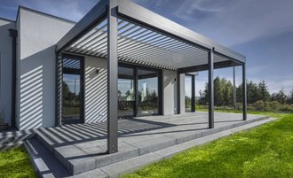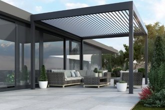 Garden pergolas, sunbreakers, and outdoor furniture for patios and gardens. Bioclimatic pergola Sunbreaker 400 for 300, 500.