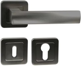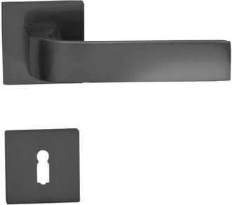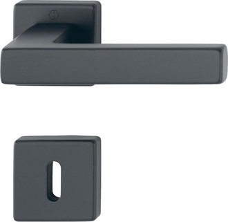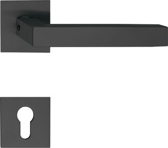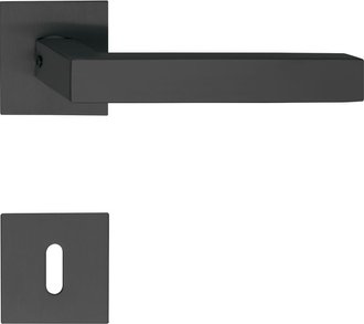 Door hardware, Sollido Malmö interior handle, black, square, flat, rosette PZ