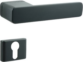 Door hardware, Cobra Striga lever handle with matte black rose, PZ