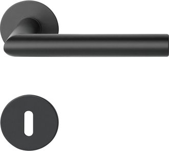 Door hardware, door handles, knobs, Solid Norway interior handles, stainless steel, black flat, OB round rosette