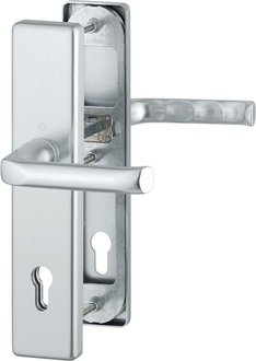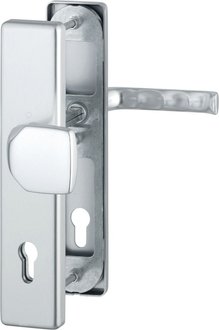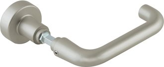 Door hardware, door handles, knobs, Dormakaba lever handle pair 10 328, L-shape, 8 mm, silver anodized